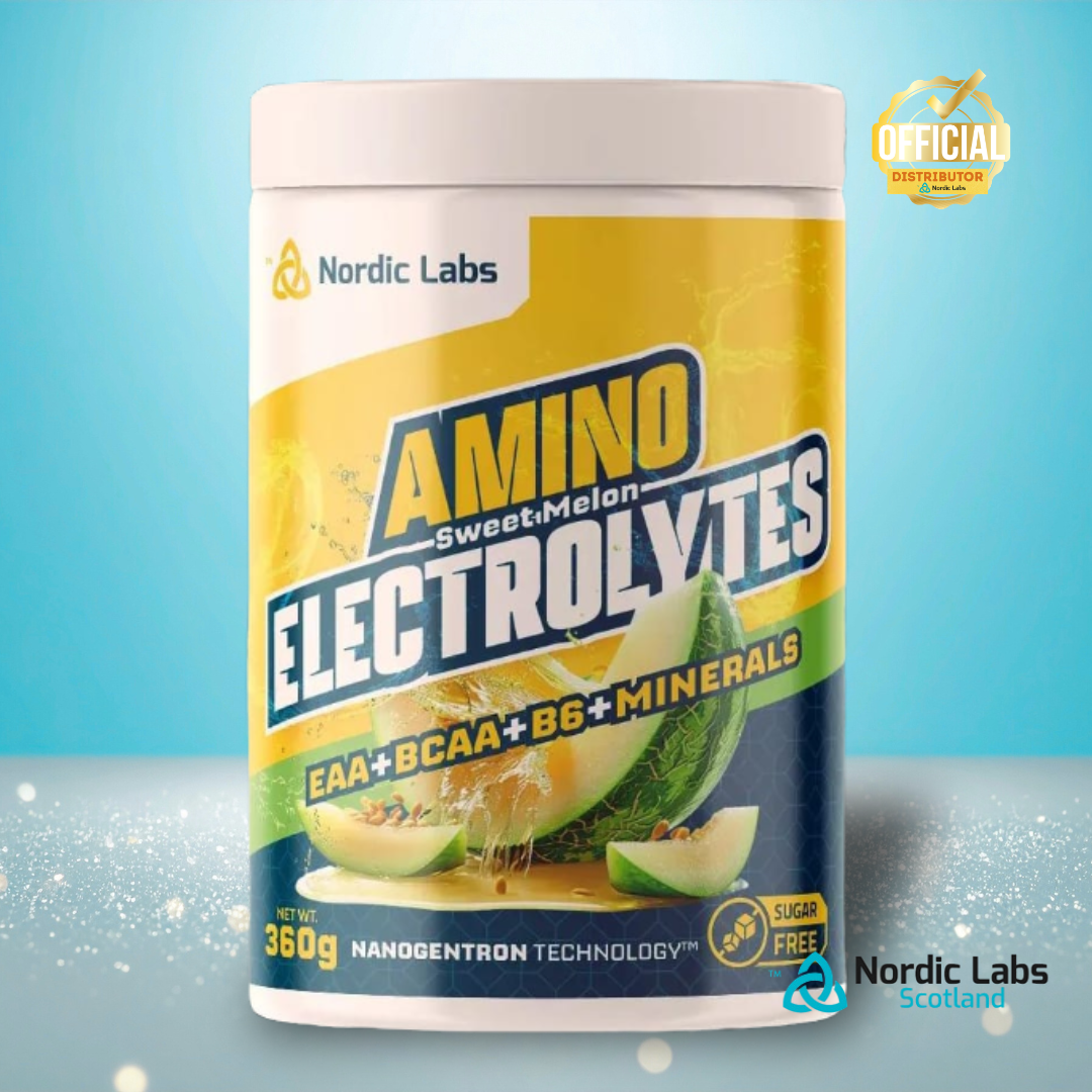 Nordic Labs Amino Electrolytes is a premium powder blend combining essential electrolytes, B‑vitamins, and a full spectrum of amino acids to support hydration, muscle recovery, and endurance. Each tub contains 360g of powder, with a delicious sweet melon flavor, designed for athletes and active individuals who demand more from their training.