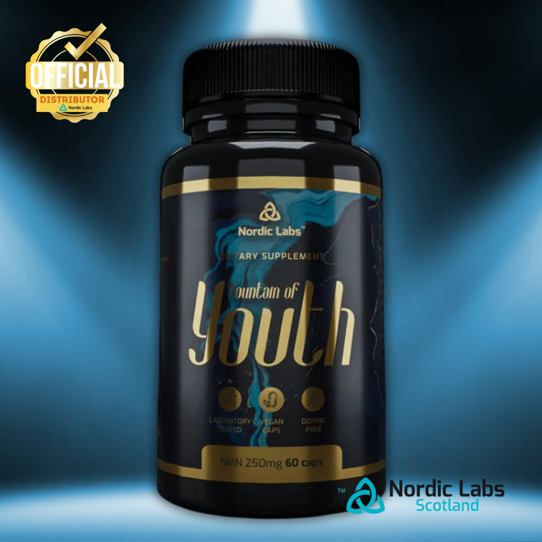 Nordic Labs proudly presents Fountain of Youth, a premium supplement formulated with 250mg of NMN (β‑Nicotinamide Mononucleotide) per serving — a compound at the forefront of longevity research.